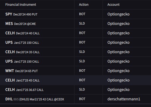 DHL hat auf die Wahl und die gestrigen schlechten Zahlen ebenfalls negativ reagiert und wir hatten hier bereits darüber geschrieben. Heute wurde ein weiterer Call auf DHL im Gewinn geschlossen, allerdings sind aktuell die Preise sehr schlecht, so dass wir keinen neuen Trade aufsetzen konnten, es bleibt abzuwarten.