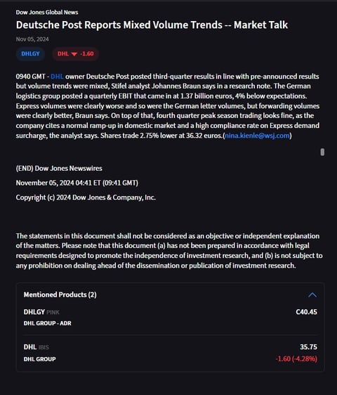 DHL hat seine Quartalszahlen veröffentlicht, die zunächst einmal negativ abgestraft wurden. Aktuell befindet sich die Aktie für den Handelstag bei mehr als – 4 %. Wir besitzen diese Aktie, wollen aber aus ihr Aussteigen, da sie wenig Liquidität in den Optionen besitzt.