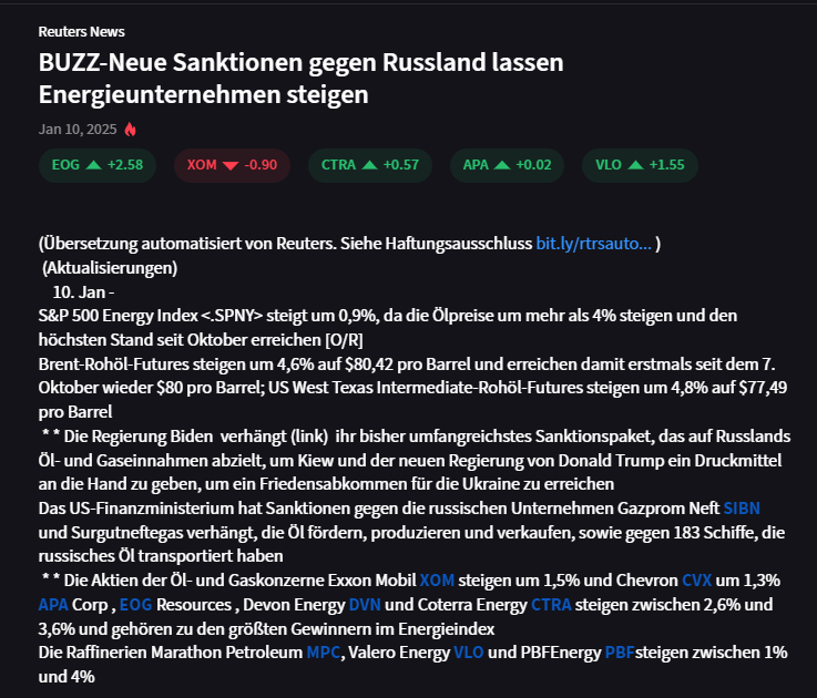Die Nachricht um Venezuela und Russland hat Öl und diverse Energiefirmen, darunter auch CVX, steigen lassen.