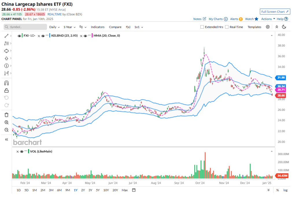 China schwächelt zweifelsfrei und so ist heute auch der FXI unter die von uns beobachtete Marke von 28 gefallen.