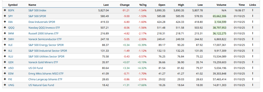 Bis auf Energie, Goldminer und Metalle schließen alle Hauptinidizes mit klaren Verlusten.