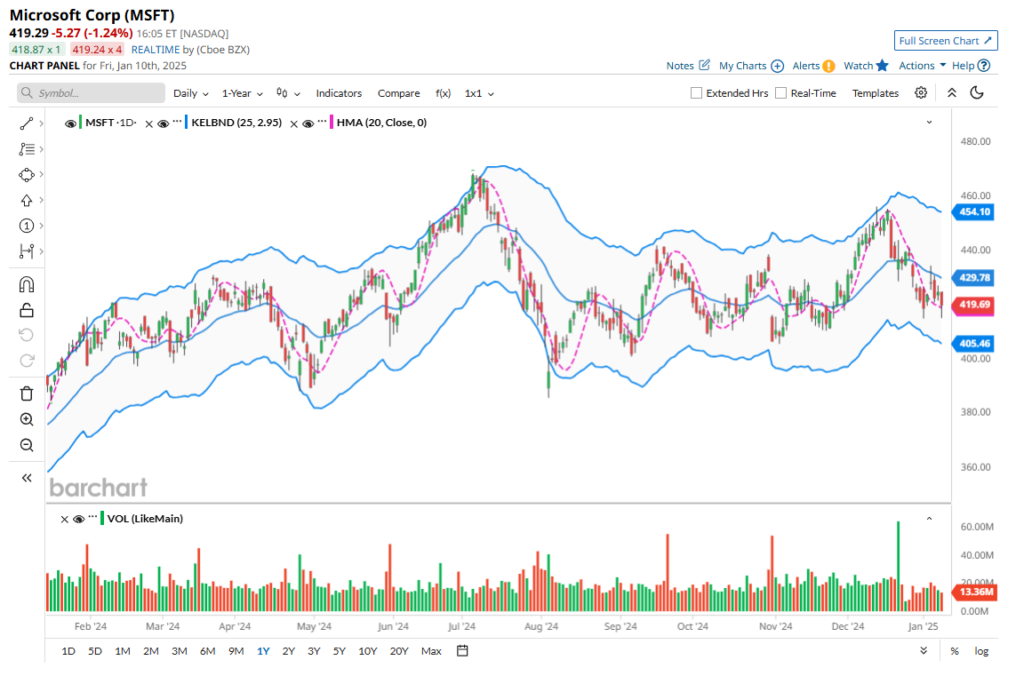 MSFT ist heute ebenfalls rot und trotzdem haben wir einen riskanteren Trade aufgesetzt, der ein ordentliches Risk Reward Verhältnis hat.