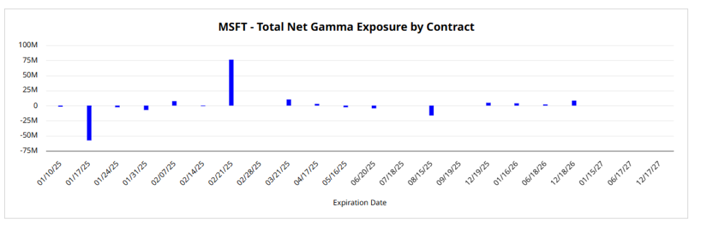 Der Maximal Gewinn dieser Position könnte 1712 $ betragen und er fällt auch in den Zeitraum der nächsten Earnings von MSFT. Das Net Gamma ist licht positiv allerdings gibt es auch viele Puts im Markt, wir werden sehen, ob das klappt.