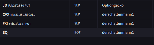 Zwischenzeitlich waren wir mit diesen Optionen ITM aber der Markt hat noch einmal gedreht. Auf Mar21´25 liegen noch weitere Puts @31, die aktuell bei +50 % sind und wir werden abwarten, wie sich die Goldminers in den nächsten Wochen entwickeln.