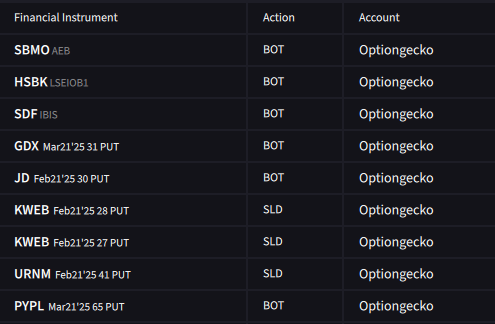 Heute haben wir neben einigen Optionstrades auch viele Aktientrades gemacht. Unsere JD Puts wurden mit +67 % der Prämien im Gewinn zurückgekauft. Ebenso auch unsere PYPL und GDX Puts. Wir beobachten alle Werte weiter und werden zu gegebener Zeit wieder tätig werden.