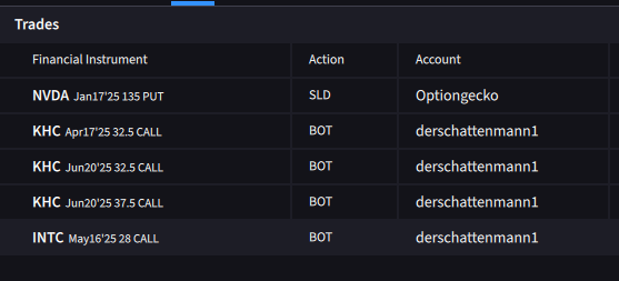 Alle unseren KHC Calls wurden im Gewinn zurückgekauft. KHC ist eine unserer Verlustpositionen und wir haben im letzten Quartal schon einiges Mal an Prämien über Covered Calls eingenommen, die den Schmerz bei verlustreichen Positionen mildern.