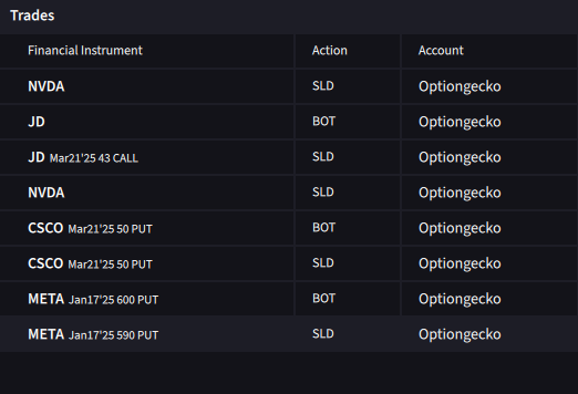 Der Kontrakt lief bis Jan17´25 und die Chancen stehen gut, dass wir die volle Prämie hätten einnehmen können. Allerdings steigt das Gamma Risiko bei kurz laufenden Kontrakten signifikant in den letzten Tagen und wir haben uns entschieden den Gewinn mitzunehmen und sind bei META flat.