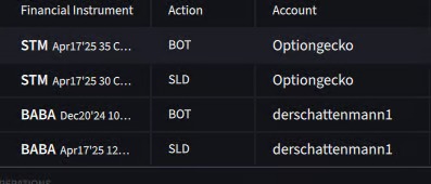 Unsere Calls für STM wurden im Gewinn zurückgekauft und wir haben neue verkauft. Da wir aus der Position raustraden möchten, haben wir uns entschieden Calls @30 für Apr´17/25 zu verkaufen.