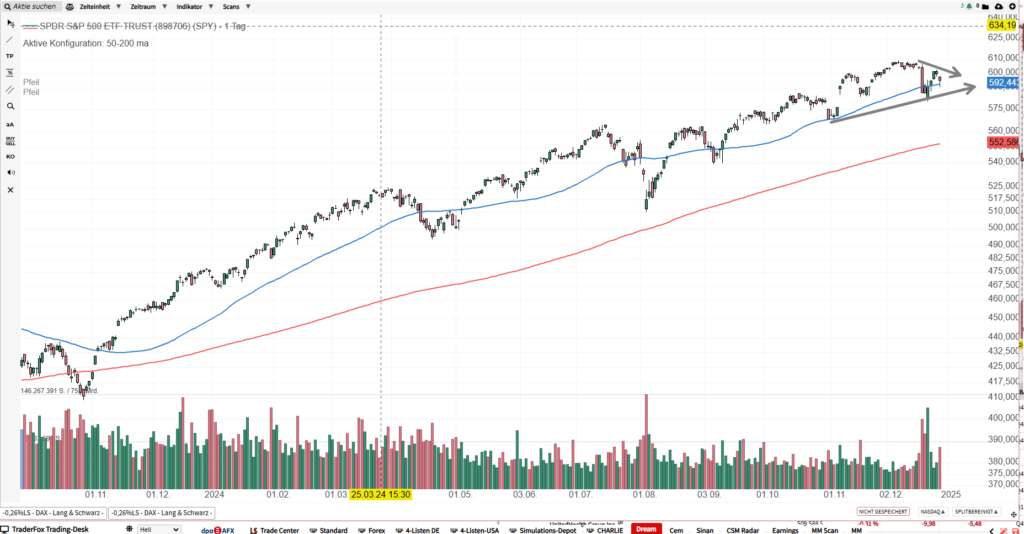 Die Indizes fallen um die 1-1,3 % und der VIX steigt, was normal ist. Ich habe das Gefühl dass 2025 einige Überraschungen bringen wird, time will tell.