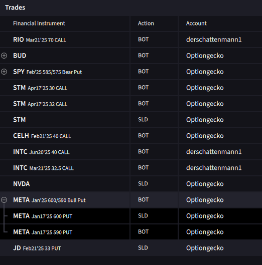 Der Gesamtmarkt hat negatives Gamma aber bei Meta verbleibt Gamma erst einmal positiv. Die höchsten Positionierungen bei dieser Aktie befinden sich um die 600-650 für den Jan17´25. Wir haben auf Meta Put Credit Spreads @600/590 verkauft und haben eine Prämie von 380 USD pro Kontrakt eingenommen. Unser Max Risk liegt bei 620 USD pro Kontrakt der am Jan17´25 verfällt. Bei diesem Trade spielt Theta für uns.